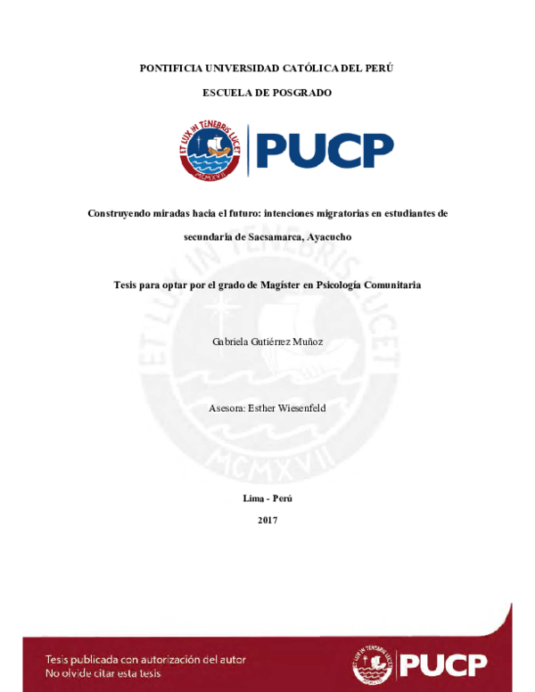 Pdf Construyendo Miradas Hacia El Futuro Intenciones Migratorias En Estudiantes De Secundaria De Sacsamarca Ayacucho Gabriela Gutierrez Academia Edu Agencia De Viajes Vivencia Andina Puente 1 De Mayo Viajes