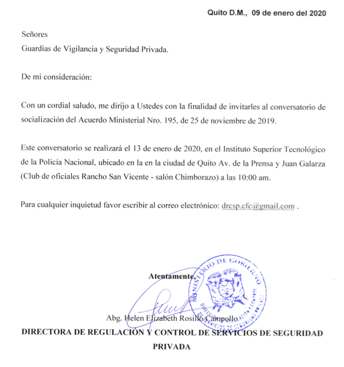 Autorizacion De Funcionamiento Bienal Para Centros De Formacion Y Capacitacion Del Personal De Vigilancia Y Seguridad Privada Ministerio De Gobierno Autorizacion De Viaje De Estudios Seguro De Viaje A Ecuador
