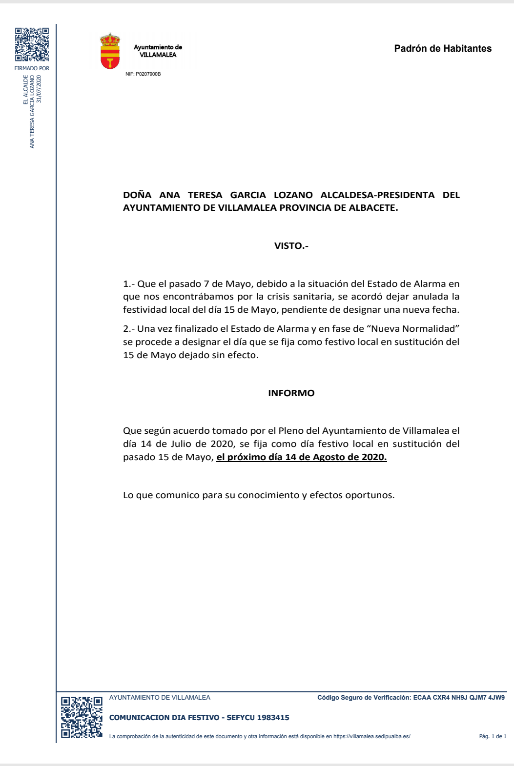 Villamalea Informa Servicio De Comunicacion Via Web Proporcionado Por Bandomovil Ayuntamiento De Las Palmas Certificado De Residencia Viajar Seguro De Viaje De Negocios