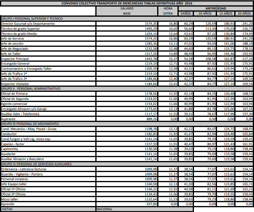 La tabla salarial para estos anos y vigente a dia de hoy es la siguiente. Allotjament i manutencio en regim de pensio completa en habitacio doble dus compartit durant 7 dies 6 nits en hotels de 3 i 4 estreles de la comunitat valenciana. Portal de la transparencia.