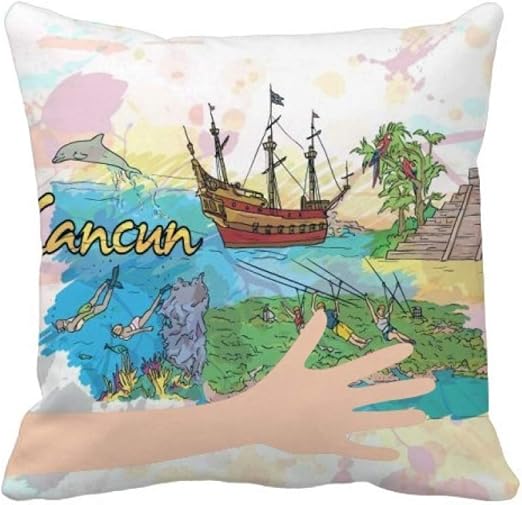 Amazon Com Cold Master Diy Lab Cancun Mexico Island Mayan Temple Hand Throw Pillow Square Cover Home Kitchen Paquetes De Viajes Familiares A Cancun Maletas De Viaje Niaa Amazon
